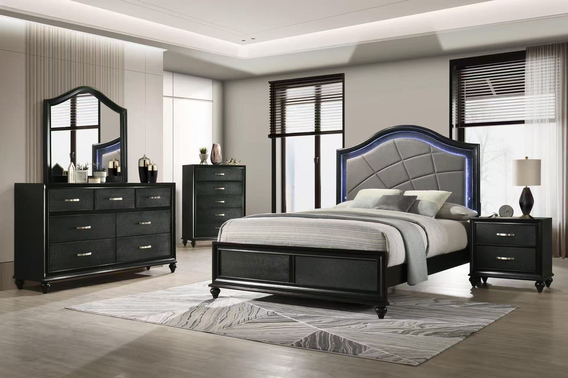 Upgrade your bedroom with the striking elegance of the Opium Bedroom Collection, where contemporary design meets luxurious comfort. With its deep black finish, refined details, and ambient LED lighting, this set turns your bedroom into a stylish and relaxing sanctuary.